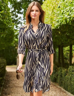 Great Plains Abstract Zebra Print Shirt Midi Dress Multi 7900 5500 Reduced To Clear Add to your basket Jigsaw Ikat Zebra Print Midi Dress KhakiBlack 13200 1 Add to your basket HotSquash Zebra Print Wrap Top Maxi Dress BlueBlack 12900 Add to your basket Hobbs Harlie Zebra Print Contrast Knit Dress NavyPink 14900 4. Zebra Printed Belted Mini Shirt Dress. Get it as soon as Wed Mar 2.