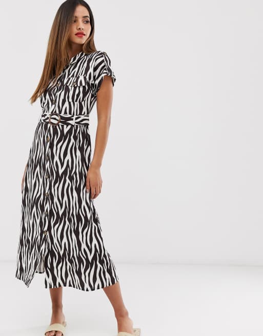 Designed in a classic shirt style with a button front collar detail and matching belt it comes complete with an all over zebra print for added appeal. FREE Shipping on orders over 25 shipped by Amazon. Discover boohoos collection of zebra printed dresses to brighten up your collection.