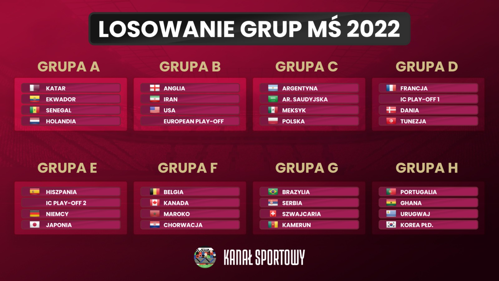 Kanal Sportowy On Twitter Tak Wygladaja Wszystkie Grupy Mistrzostw Swiata W Katarze A B P C D Icp1 E Icp2 F